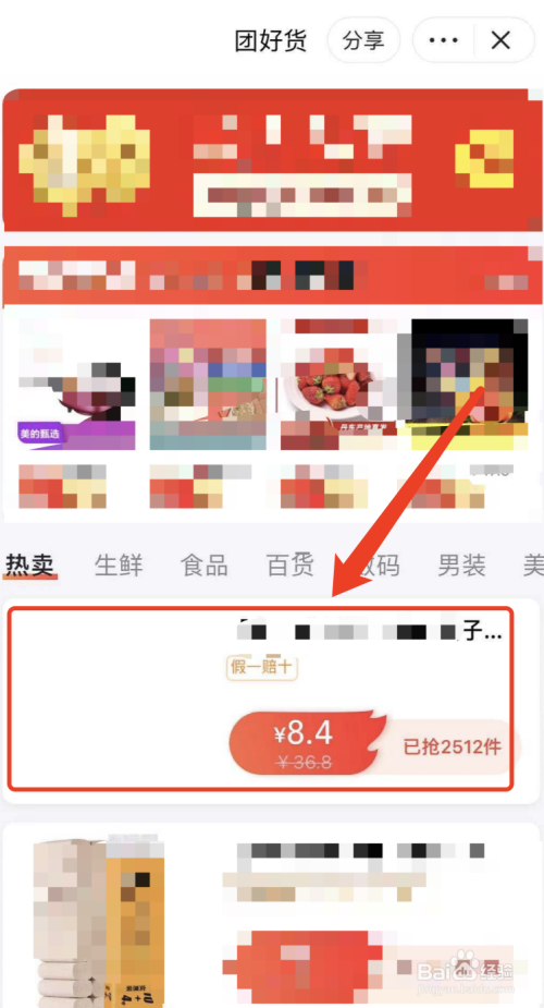 进入【团好物】界面后,选择具体喜好的好物点击打开,如图;