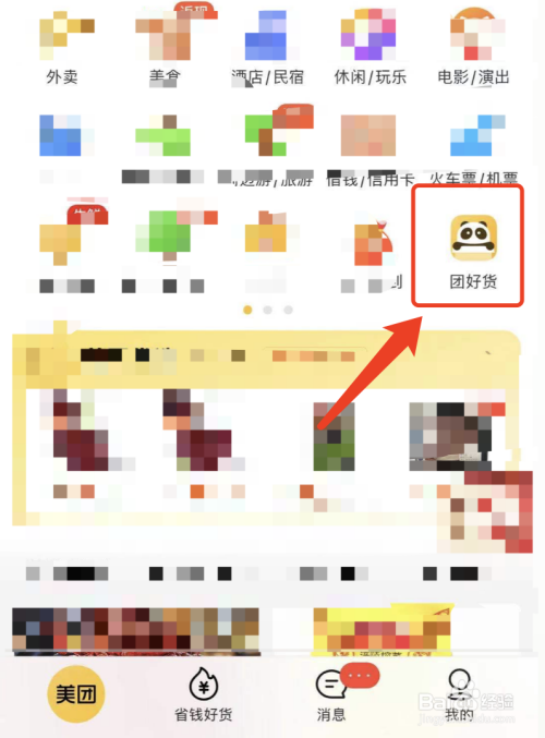 进入软件本家儿界面后,点击【团好物】选项,如图;