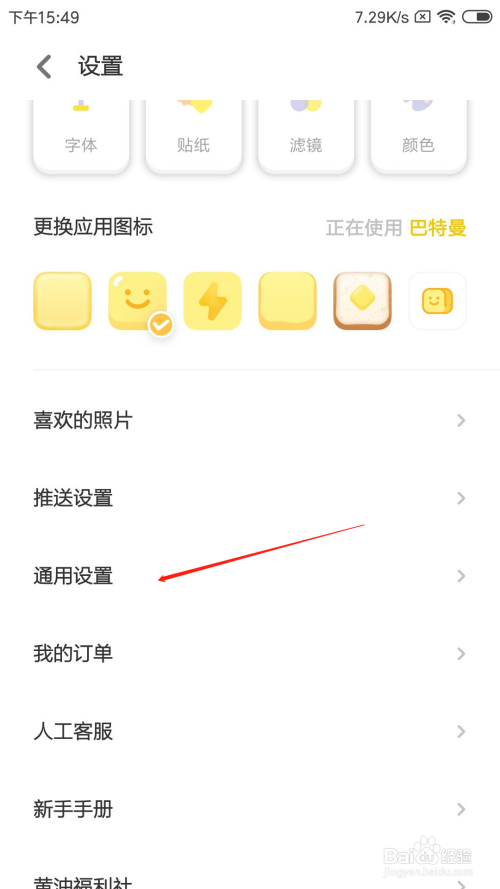 在设置页面中,点击通用设置选项。