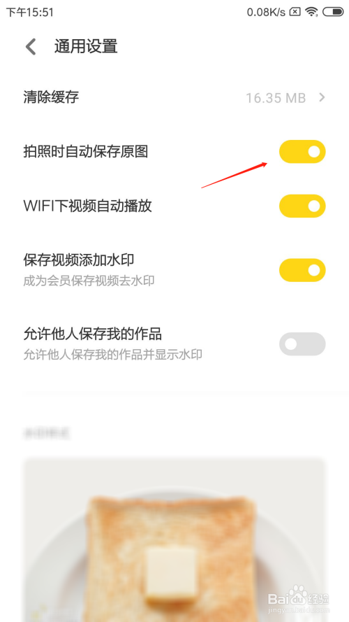 在通用设置页面中,点击摄影时主动保留原图后面的开关打开即可。