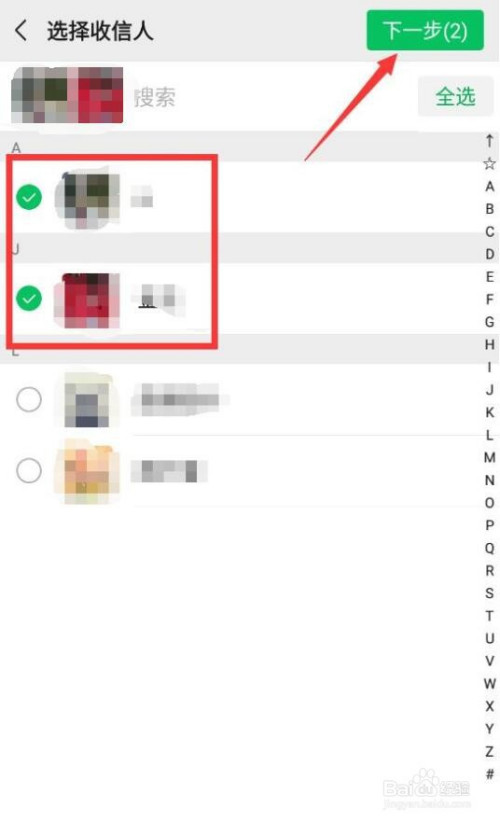 点击选摘要群发动静的伴侣们,选择好伴侣们之后点击下一步