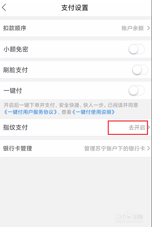 在支付设置项目栏中,我们找到指纹支付功能。
