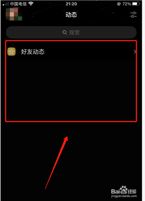 3、进入动态界面,会看到【老友动态】下方是空白的,如下图;