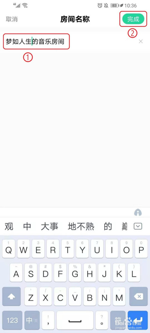 ●点击右上角【完当作】,即可点窜房间名称。