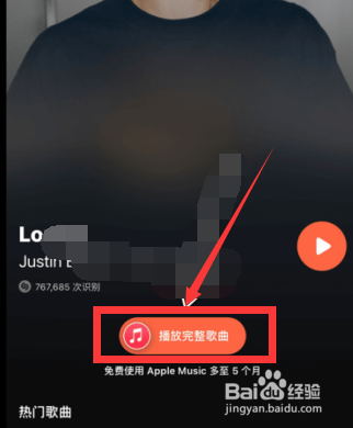 打开肆意歌曲,点击“播放完整歌曲”。