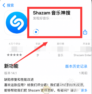 打开应用市场,搜刮下载“Shazam”软件。