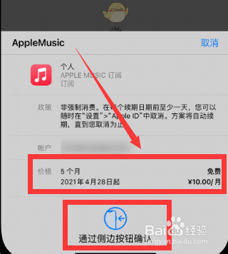 兑换当作功,提醒5个月免费,点击侧边按钮确定。
