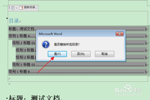 在“是否替代所选目次”的提醒框中,点击“是”。