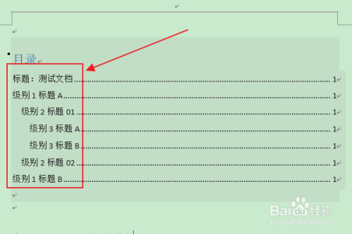 返回编纂区,可以看到选中级别(级别1)的目次项已被设置为尺度字符间距。