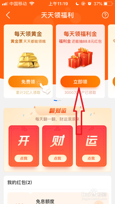 这下,我们就可以看到有一个【天天领福利金】,这就是支付宝的福利金,我们点击此处。