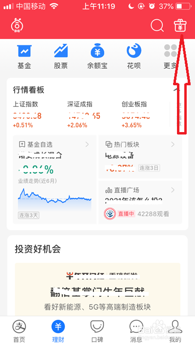 在理财页面,点击右上角的这个图标。(见以下截图)