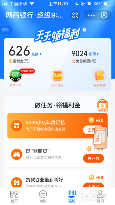 接下来,在进入以下页面,我们可以经由过程做使命来获得福利金。