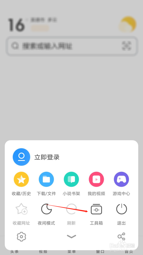 打开UC浏览器之后,点击下方的菜单选项。