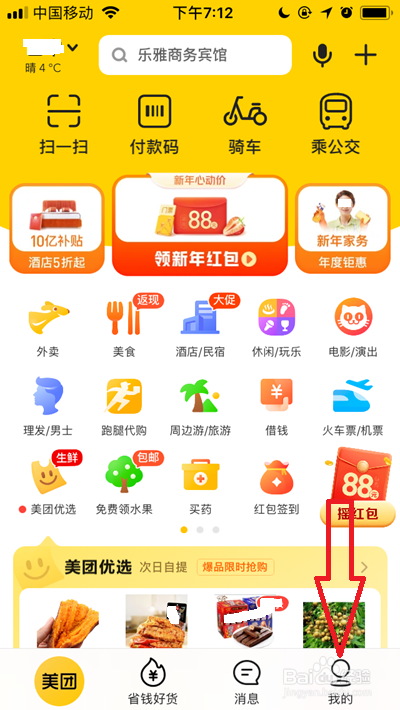 打开美团app后,点击右下角的【我的】