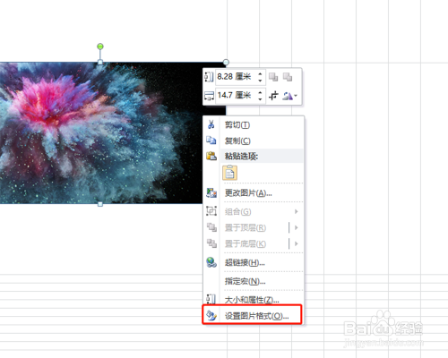 在图片上右击鼠标,点击设置图片格局。