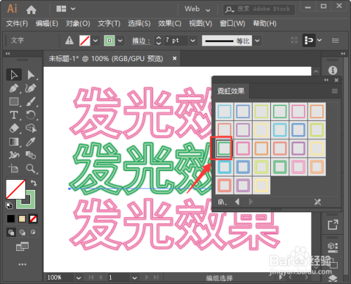 我们此刻看到霓虹结果的面板打开之后,这里有良多分歧的发光样式,如图所示。