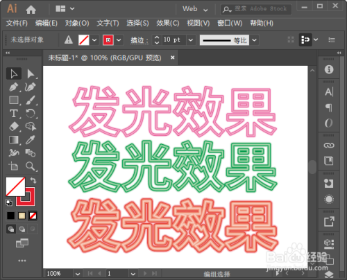 最后,我们看到三组文字都酿成霓虹灯发光结果了。