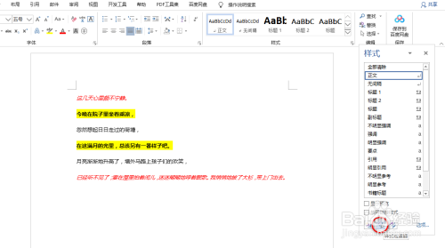 点击“起头”选项卡下 ,样式功能区右下角处的斜箭头,具体如图所示: