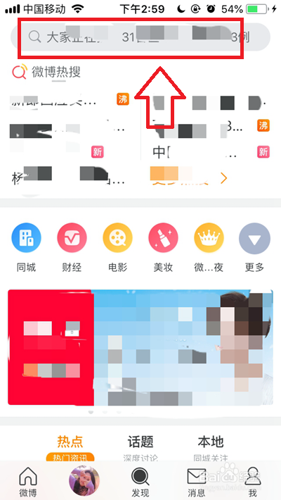打开微博后,点击底部导航栏中的【发现】