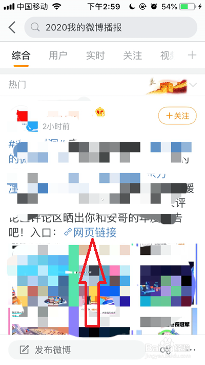 然后在顶部搜索框内输入【2020我的微博播报】