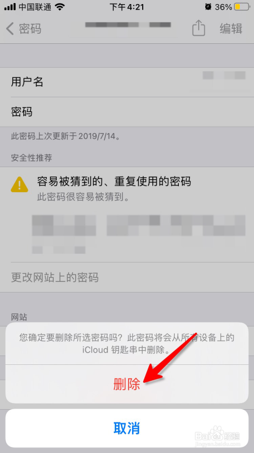 点击想要删除的密码。