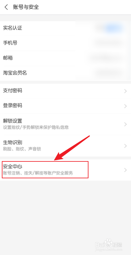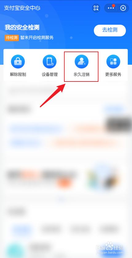 2、点击【账号与平安】,点击【平安中间】,点击【永远刊出】