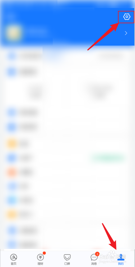 1、在手机中打开支付宝,进入我的小我中间,点击右上角的【小齿轮图标】