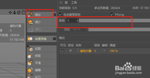 在右侧的东西栏中有一项“细分”选项,我们需要给球体一些细分才可以显示其他东西发生的结果。没点击一个“细分”就增添一个级此外细分数。细分数越多,雕镂结果越较着,但同时对电脑的设置装备摆设要求越高,电脑轻易卡顿。是以我们一般将细分数设置为3-5摆布。