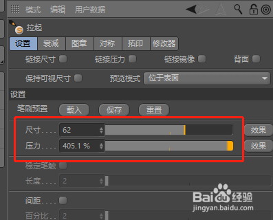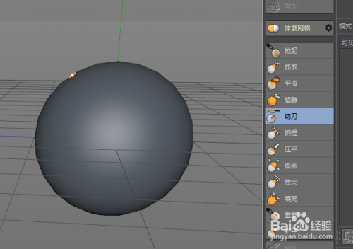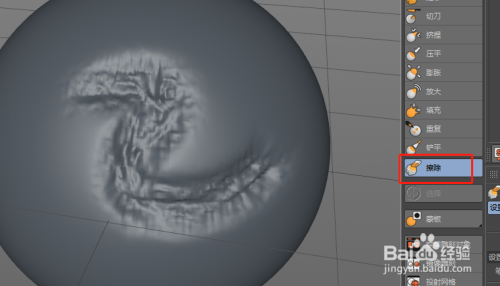 利用快捷键N-A封闭线条显示。选择“拉起”东西,在球体上拖动则可以看到拉起的结果。按住鼠标中心的滚轮并标的目的右或标的目的左拖动则是点窜拉起东西的尺寸;按住鼠标中心的滚轮并标的目的上下拖动则是点窜拉起东西的压力大小。尺寸越小,压力越大则拉起结果越较着。其他的雕镂东西的用法也都是一样。
