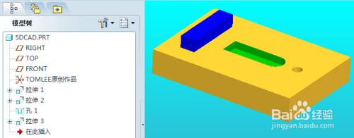 例如这里,我们假设不想显示右侧孔的线条显示,可是又不是要删除这个孔,怎么操作?