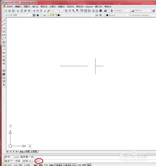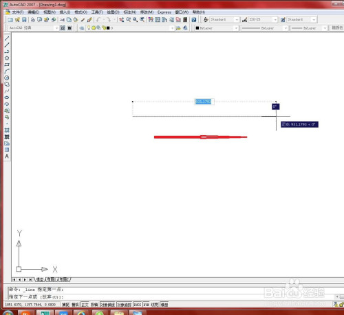 程度标的目的左拖动鼠标指定直线偏向。在号令行输入直线长度,并按【Enter】键确认。如下图所示。