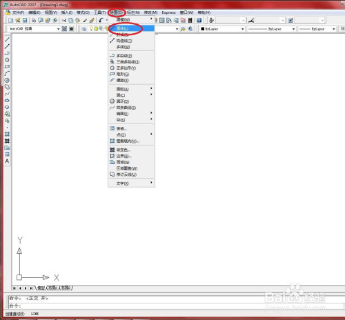 选择【画图】→【直线】菜单号令。如下图所示。