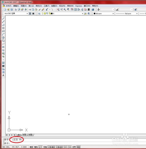 启动CAD,按【F8】键开启【正交】功能。如下图所示。