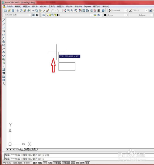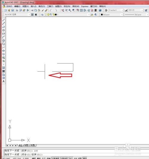 在画图区域肆意单击一点作为直线起点。如下图所示。