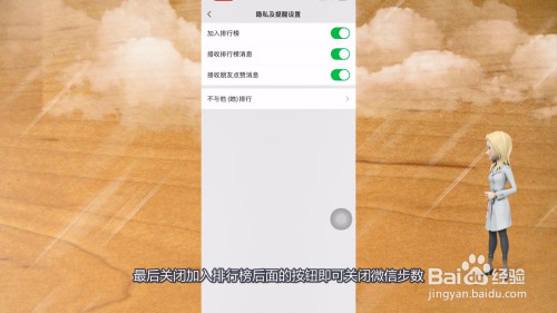 最后封闭插手排行榜后面的按钮即可封闭微信步数。