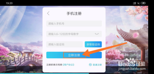 第二、进入手机注册页面,当作功注册九天仙尘游戏账号;