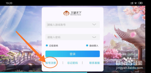 第一、打开九天仙尘游戏,点击“账号注册”按钮;