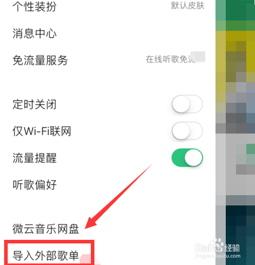 弹出菜单栏,点击“导入外部歌单”。