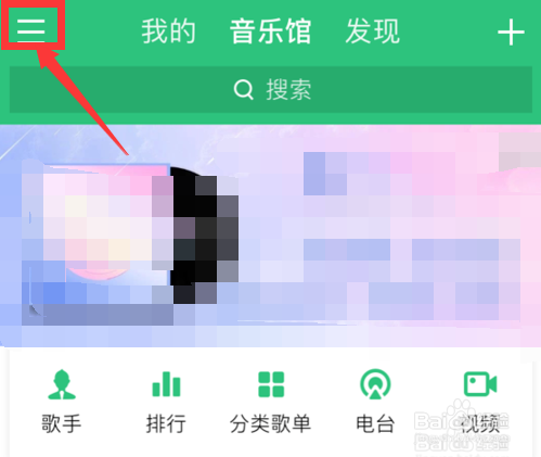 打开qq音乐,点击左上角三条横线。