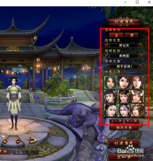 右侧可以选择玩家性别、发型、脸型等,可以随便设置,因为游戏中都可以进行点窜,设置完当作点【建立脚色】。