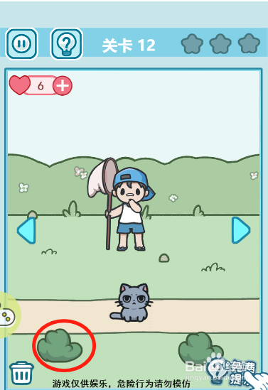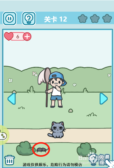 首先点击左边的草丛,把虫豸从左边赶到右边