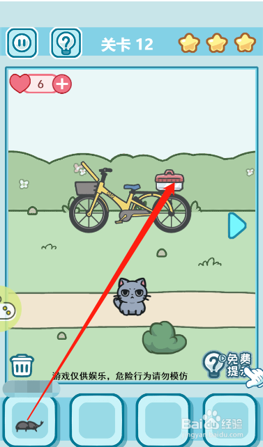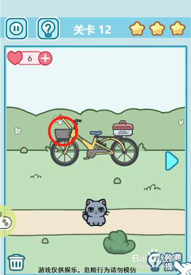 然后点击单车前面的篮子让小猫躲起来