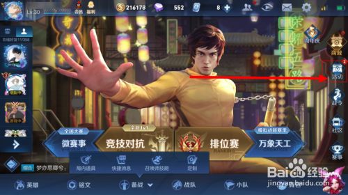 来到王者荣耀首页,点击活动