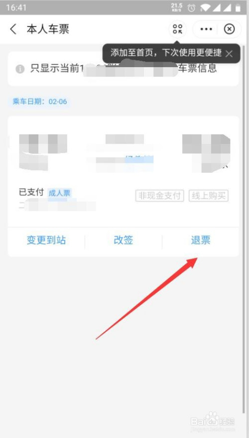 第5步如图点击退票的按钮。