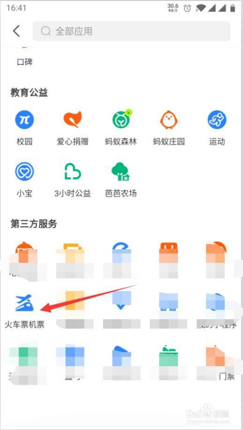 第2步在全数功能中点击火车票机票。