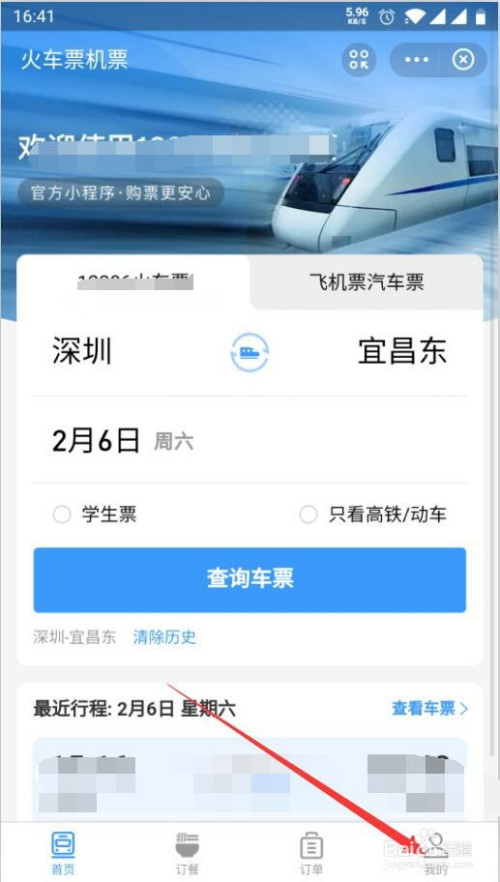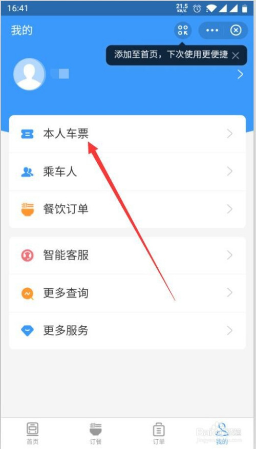 第4步,在小我中间点击本人车票。