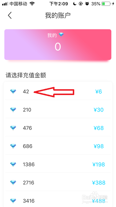 选择充值的金额。(以下截图为我以充值42颗钻石为例)