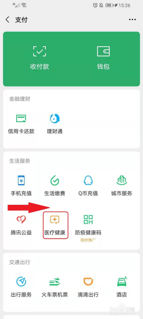 点击“糊口办事”下面的【医疗健康】。