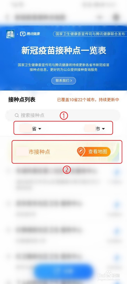 ●点击“XX市接种点”右侧的【查看地图】,即可查看XX市新冠疫苗接种点地图。