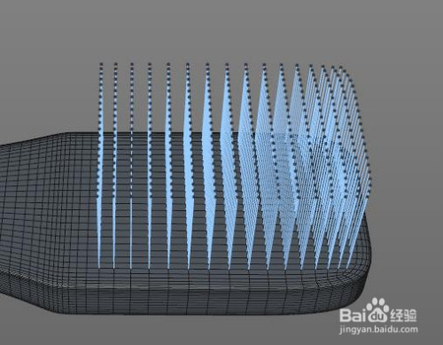 在顶视图中利用快捷键K-L调出轮回切割东西,在模子中纵标的目的偏向切2次。我们知道毛刷手把处有一个小洞用来栓绳索,是以我们还需在手把处挖出一个小孔洞。我们在手把末从头至尾处操纵轮回切割东西再切一刀。